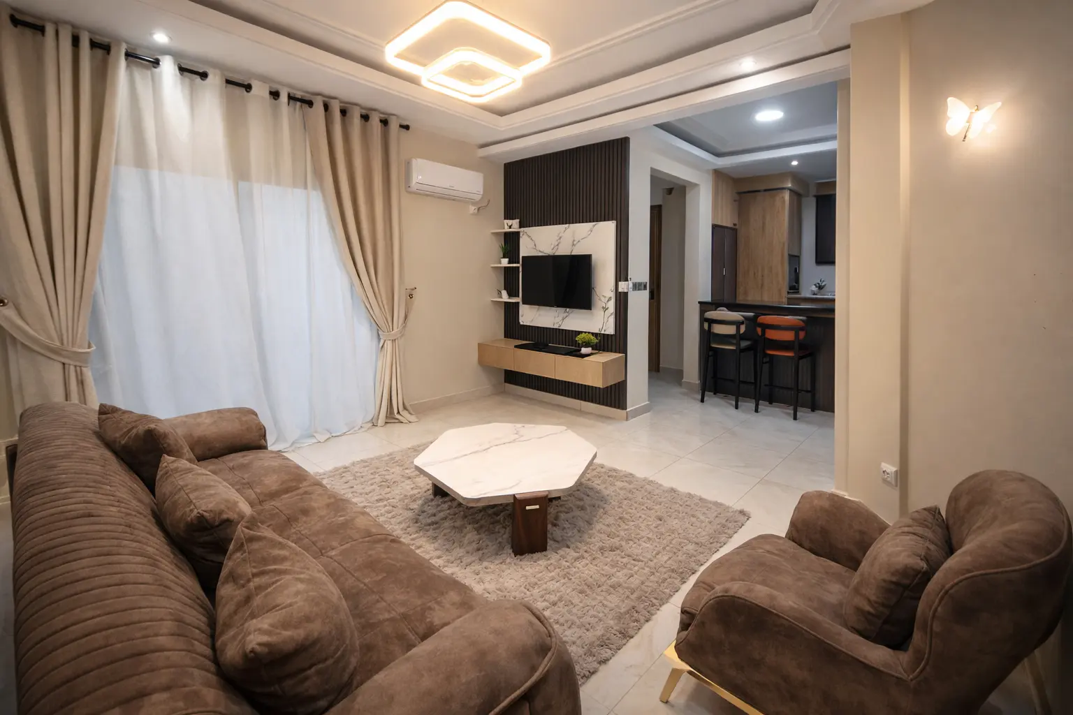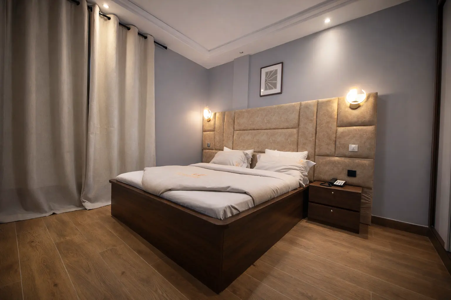 Une suite résidentielle combinant espace et prestations hôtelières premium. Salon indépendant, cuisine équipée et confort optimal pour les séjours prolongés ou les invités recherchant plus d’intimité.